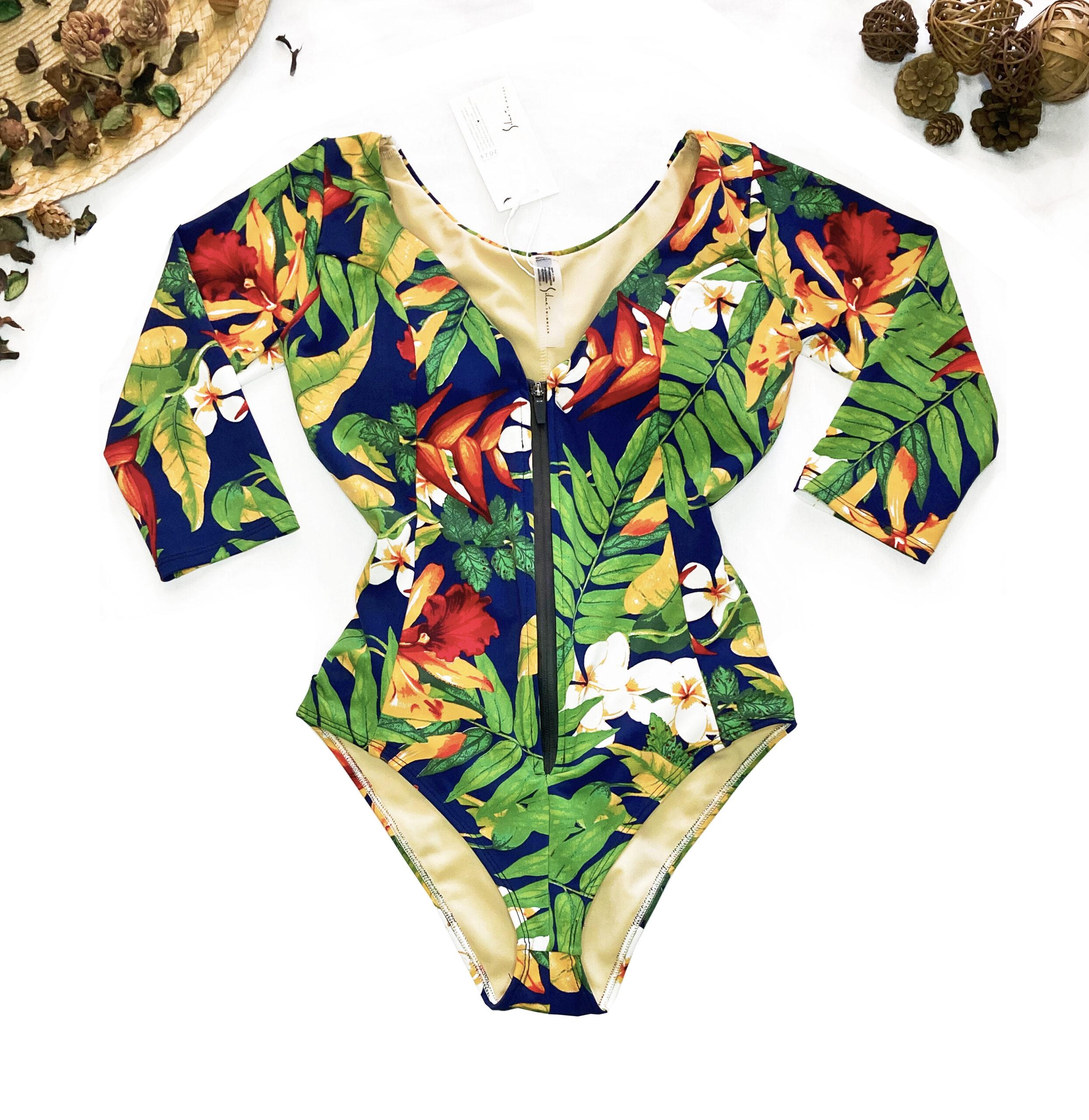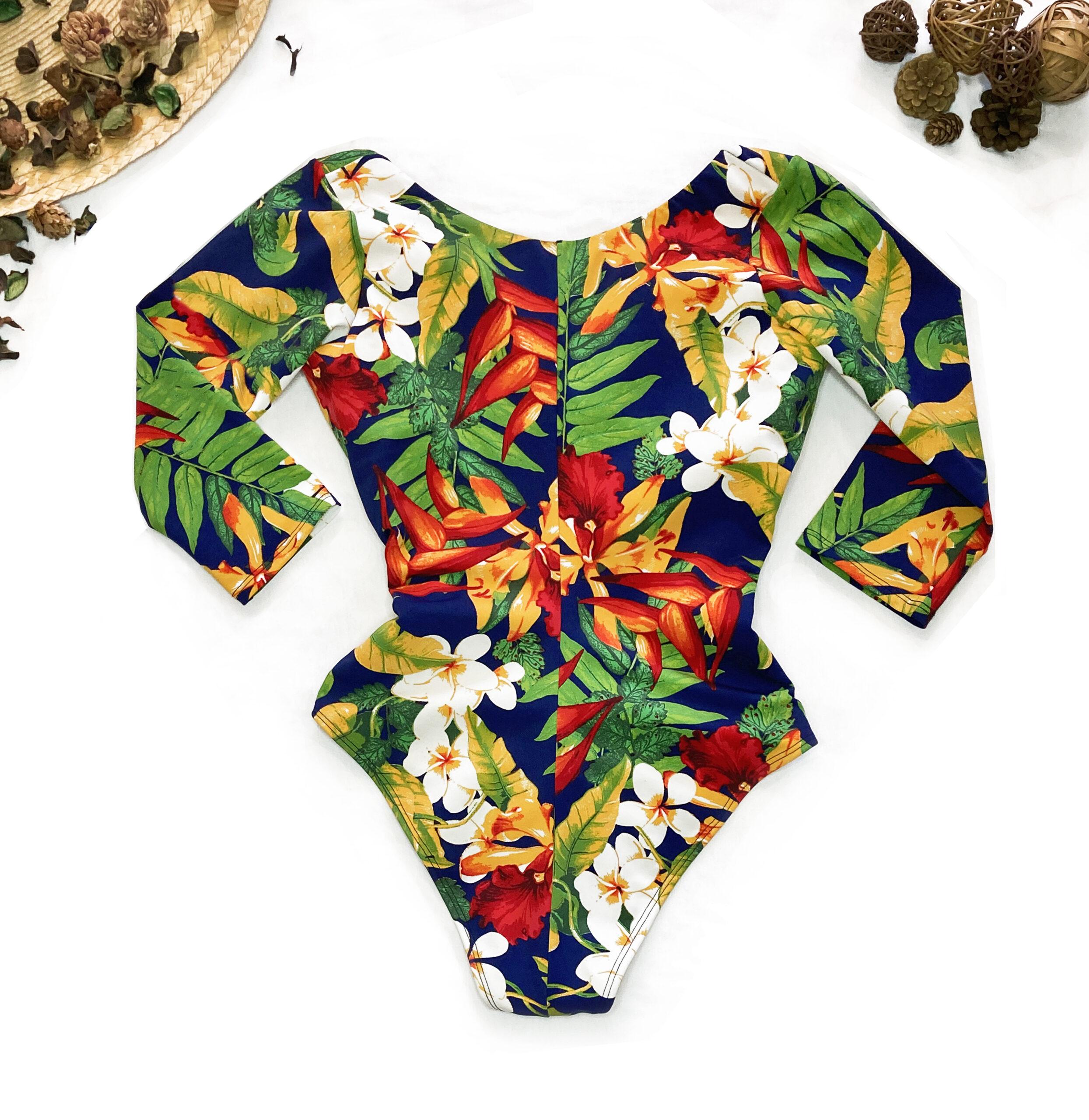 Traje de baño de lycra estampada forrado en tela compresiva, misma tela usada en fajas post operatorias.